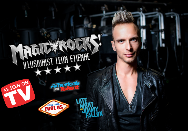 As seen on America’s Got Talent, Jimmy Fallon, Master’s of Illusion, and Penn & Teller Fool Us! Illusionist Leon Etienne rocks venues around the world with his blockbuster illusion show: Magic Rocks! This jaw-dropping, one-of-a-kind, critically acclaimed hit show, is 100% interactive! Your audience will witness the worlds best grand illusions, award-winning sleight of hand, and hilarious comedy in this immersive, family friendly, Rock N Roll illusion spectacular that brings joy, wonder, laughter, and magic when the world needs it most!